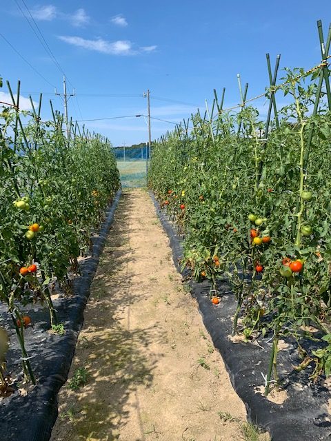 自分たちの畑で作った低農薬有機野菜を使って、トマトジュース・ソース・味噌・和菓子を作っています。